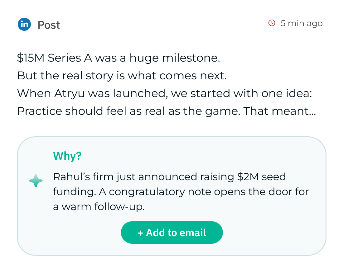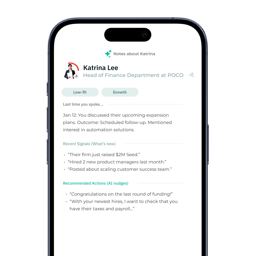 After a meeting or introduction, just speak, type, or jot a note. No forms. No admin.
